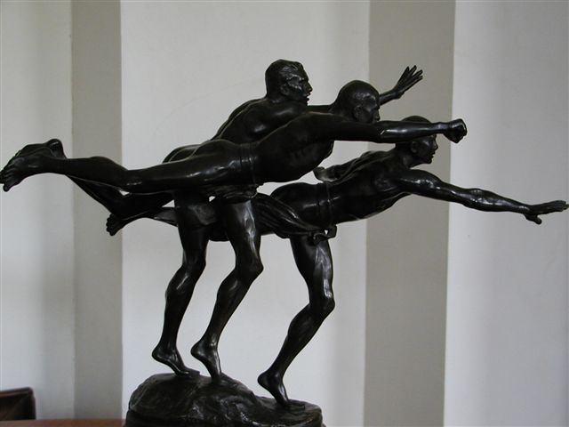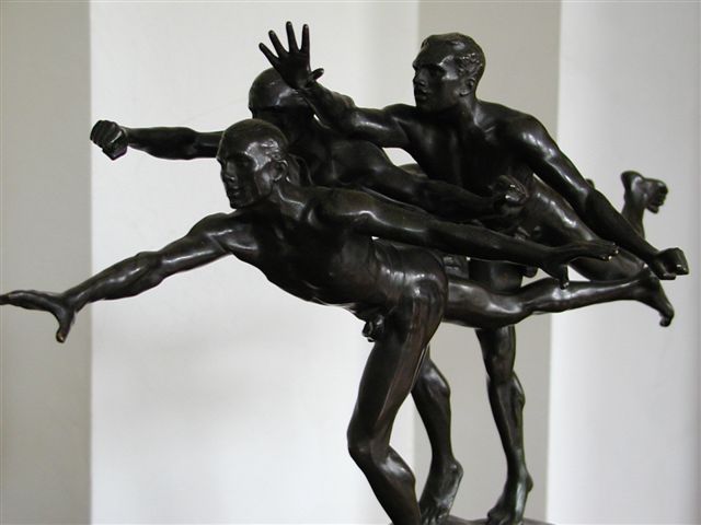Bekannte Darstellung dreier Läufer kurz vorm Ziel
