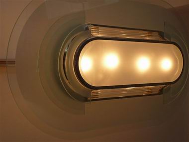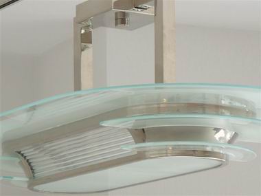 Klassische, strenge Form der 30er Jahre. Aufwändige, hochqualitative Verarbeitung. Messing vernickelt, massive Glasstäbe. 4 Brennstellen mit E14 Gewindefassungen Länge der Aufhängung kann nach Belieben bestimmt werden.