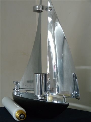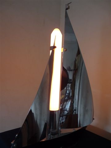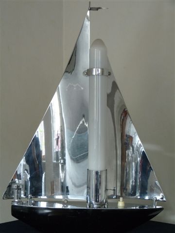 Ausgefallene Tischlampe als Segelboot, Frankreich um 1930