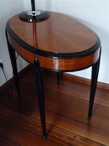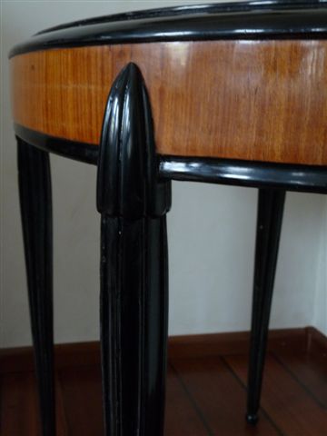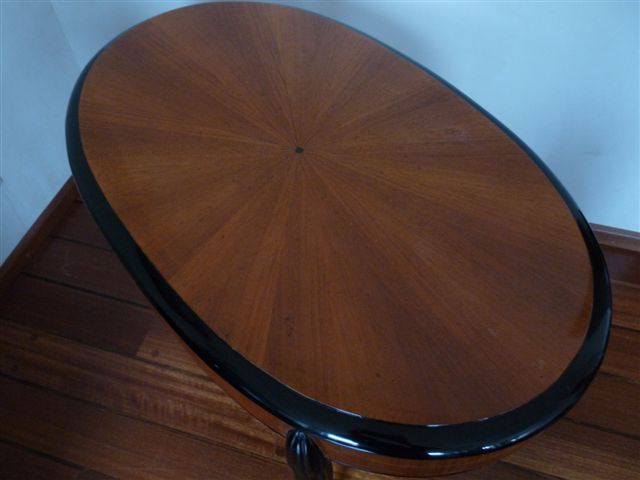 Ovale Form, kolbenartige gerillte Beine Palisander-Furnier, schwarz Hochglanzlack